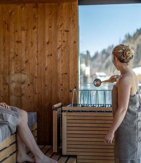 - Zwei große Panoramasaunen: 60 °C und 90 °C